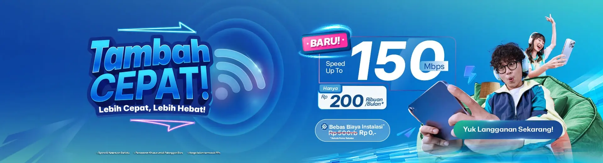 Nikmati wifi unlimited rumah dengan kuota unlimited dan gratis biaya instalasi. Internet cepat dan stabil untuk seluruh keluarga, kini makin lengkap dengan Add-on Kuota HP Sekeluarga (opsional) untuk kebutuhan internet seluruh anggota keluarga, kapan saja di mana saja.